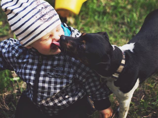 Joskus on edelleen tilanteita, joissa Konna varoittaa murisemalla, mutta tytön kaaliin on jo pikkuhiljaa mennyt myös se, että jos koira murisee, on se varoitusmerkki ja viimeistään silloin on peräännyttävä (hän lähestyy Konnaa hyvin, hyvin usein ja tällaisissa tilanteissa lapsi perääntyy aina, suurimman osan ajasta Konna antaakin tytön lähestyä ja silittää). Yritän häntä muistuttaa, että nämä samat säännöt pätevät kaikkiin muihinkin koiriin.